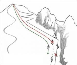 Za sestop uporabimo novo gaz, saj s sestopanjem po isti kot smo jo uporabili pri vzponu, prvo uničujemo – sčasoma bo postala neuporabna, hoja pa naporna.