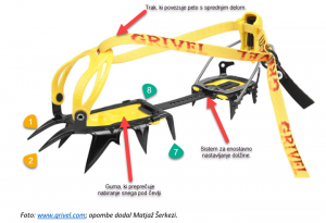 - univerzalne dereze: namestimo jih lahko na kateri koli gojzar (slika spodaj levo).