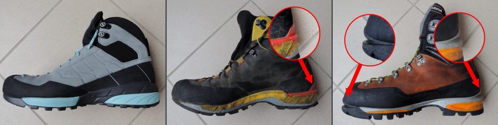 - avtomatske dereze: namestimo jih lahko le gojzarje s posebno poličko iz trde plastike na peti in na prstih (slika spodaj desno).