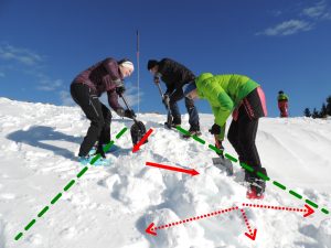- Večkrat oz. po potrebi izvedemo preizkus stabilnosti snežne odeje.