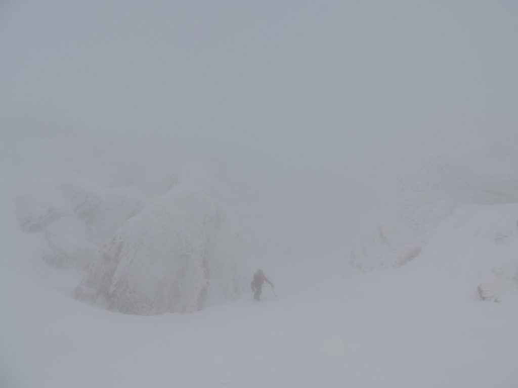 V primeru gosti megli uporabimo kombinacijo hoje po azimutu in taktičnega iskanja poti.